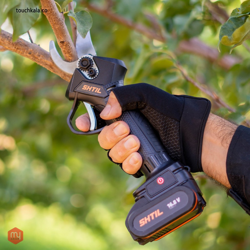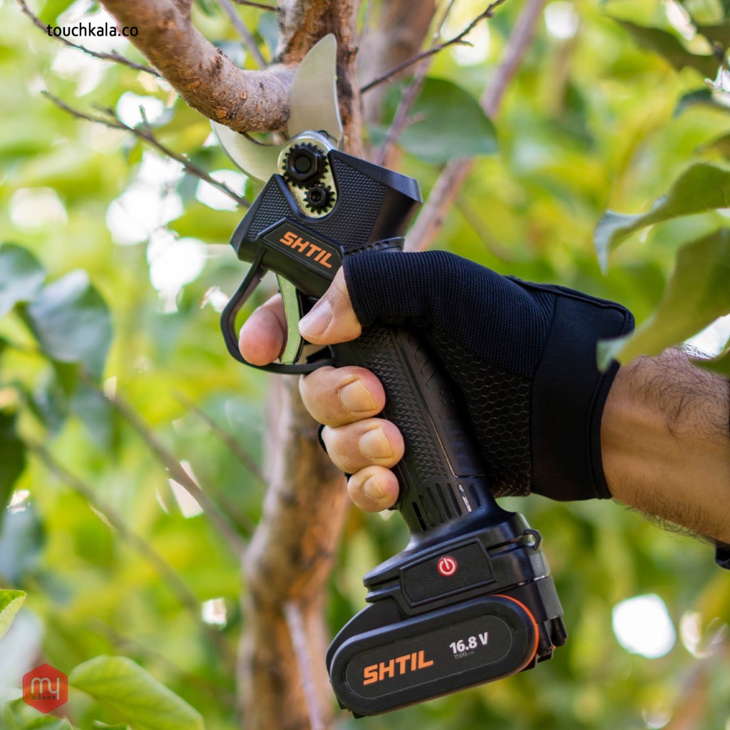 قیچی شارژی اشتیل Shtil با باطری لیتیوم 16.8 ولت و قطر برش 25 میلیمتر، مناسب برای برش و هرس شاخه ها میباشد.