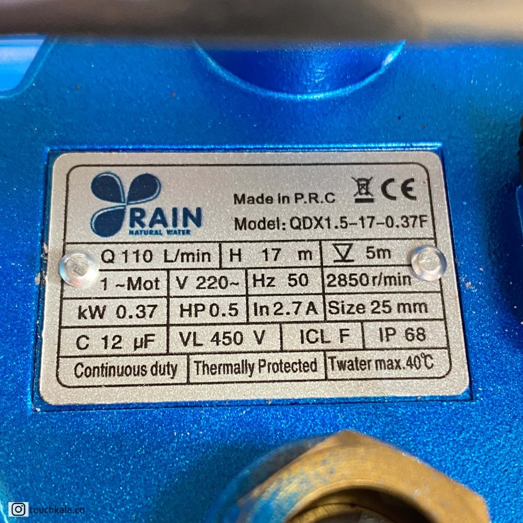 کفکش راین 17 متری مدل RAIN QDX1.5-17-0.37F مناسب چاه های اب صاف و متراژ 5 الی 15 متر میباشد.