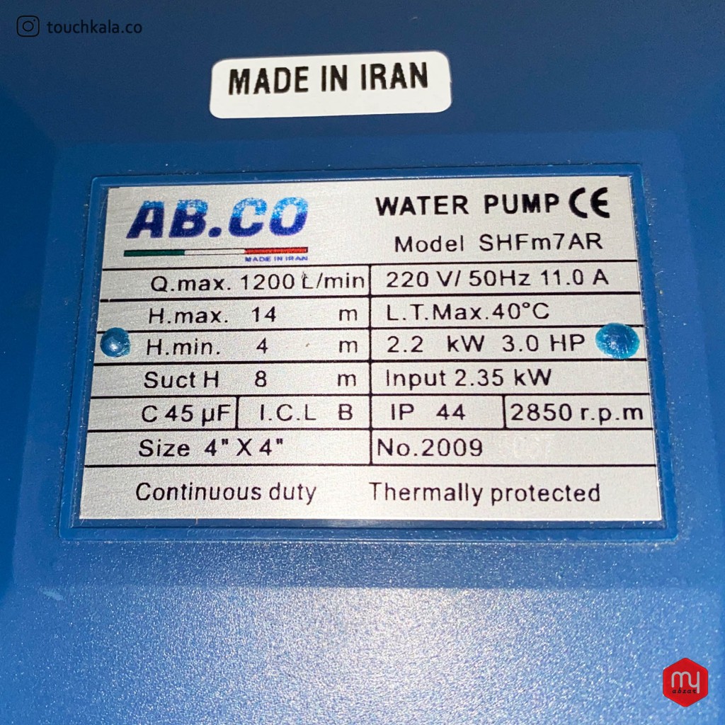 پمپ 3 اسب 4 اینچ ابکو مدل abco SHFm7AR از ویژگی های این پمپ میتوان به کیفیت قطعات تشکیل دهنده آن اشاره کرد. جنس بدنه پمپ از جنس چدن ، جنس پروانه از برنج و جنس شفت آن نیز از استیل میباشد.