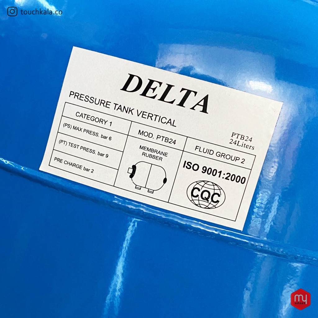 مخزن تحت فشار 24 لیتری دلتا DELTA در بازار با عناوینی چون مخزن تحت فشار، مخزن اب پمپ و یا مخزن پمپ اب و مخزن باد پمپ اب نیز شناخته می شود. این منبع فلزی بعد از پمپ آب نصب شده و با نگهداری آب، تحت فشار مناسب باعث می شود تعداد دفعات روشن و خاموش پمپ کاهش چشمگیری داشته و این مساله ، اهمیت زیادی برای کاهش استهلاک و خرابی پمپ آب و شبکه لوله کشی ساختمان و همچنین صرفه جویی در مصرف برق و انرژی دارد.