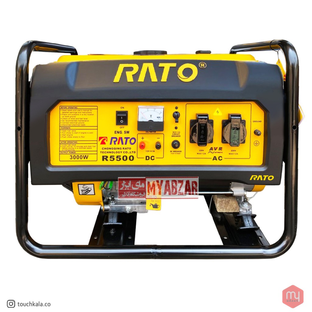 موتور برق راتو 3000 وات مدل RATO R5500 , از نوع موتور هواخنک, چهازمانه و تکفاز میباشد. نوع سوخت قابل استفاده بنزین است. فرکانس 50 هرتز است. دارای موتور قدرتمند به توان 7 اسب است که در حالت اوج به خروجی برق 3000 وات میرسد.