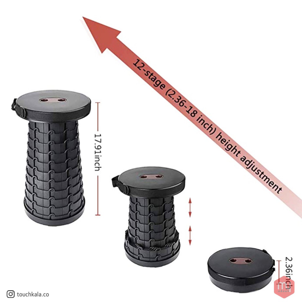 این صندلی تلسکوپی کاملا سبک و قابل حمل است. قطر این محصول ۲۶ سانتی متر و وزن آن فقط ۱.۵ کیلوگرم است. بدین ترتیب این صندلی بسیار جمع و جور بوده و میتوانید از آن در هر مکانی استفاده کنید.