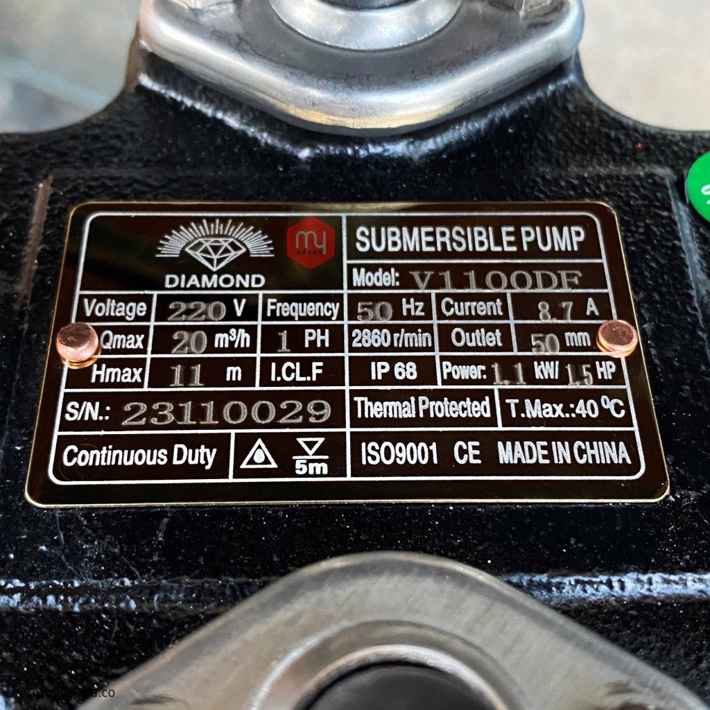 پمپ لجن کش خردکن دار 11 متری 2 اینچ دیاموند مدل V1100DF مناسب چاه های متراژ 1 الی 10 متر میباشد.لجن کش DIAMOND با بدنه چدن,استیل و پروانه از جنس چدن و قدرت موتور 1.5 اسب توانایی خروج اب تا 333 لیتر در دقیقه را دارد.ساخت چین.