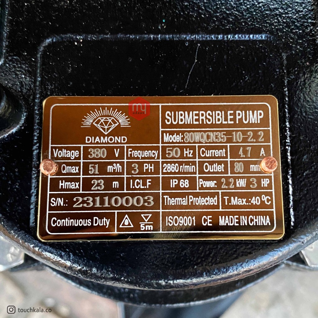 پمپ لجن کش خردکن دار 3 فاز 23 متری 3 اینچ دیاموند مدل 80WQCN35-10-2.2