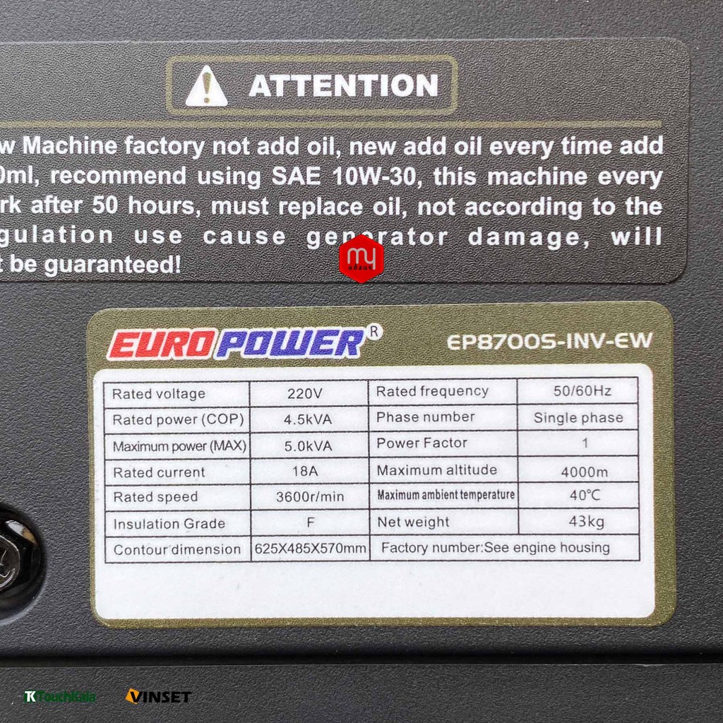 برند و مدل | موتور برق سایلنت اینورتر 5 کاوا یورو پاور مدل EP8700S INV EW |