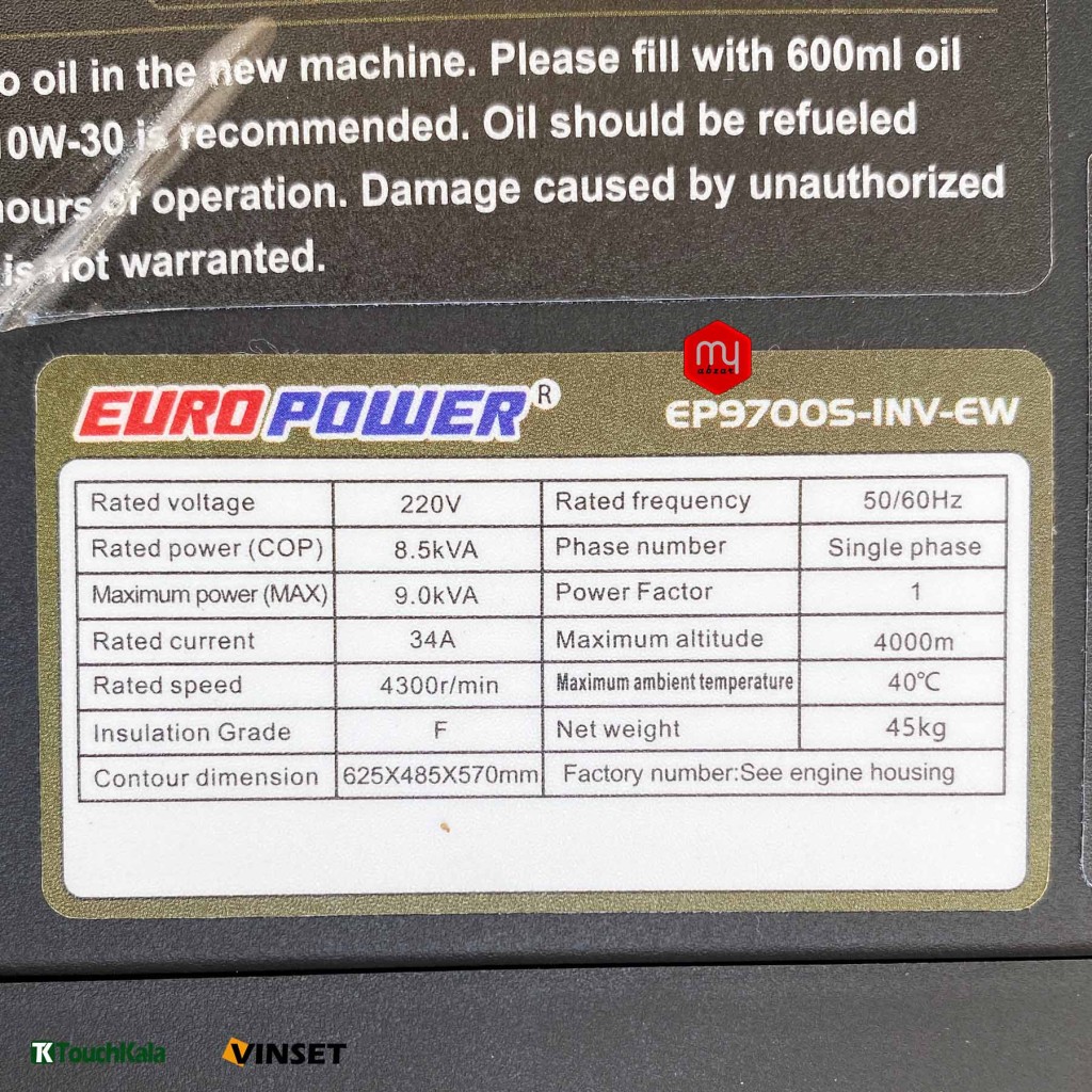 برند و مدل | موتور برق یورو پاور مدل EP9700S INV EW |