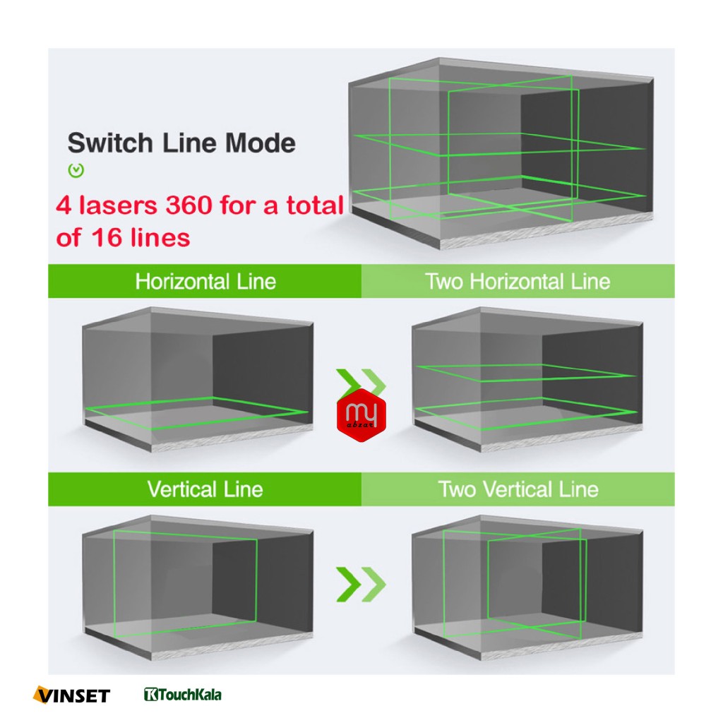- تعداد خط لیزر: ۱۶ خط ( ۴ مربع کامل ۳۶۰ درجه)
