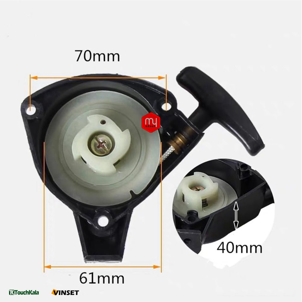 هندل یا استارت دستی موتور 2 زمانه tu26 قابل نصب بروی تمام دستگاهای که مجهز به موتور 2 زمانه tu26 هستند از جمله:سمپاش موتوری پشتی , سمپاش خرطومی اتومایزر , یونجه بر و علف زن , چاله کن , موتورپمپ 1 اینچ و 1.5 اینچ و غیره...