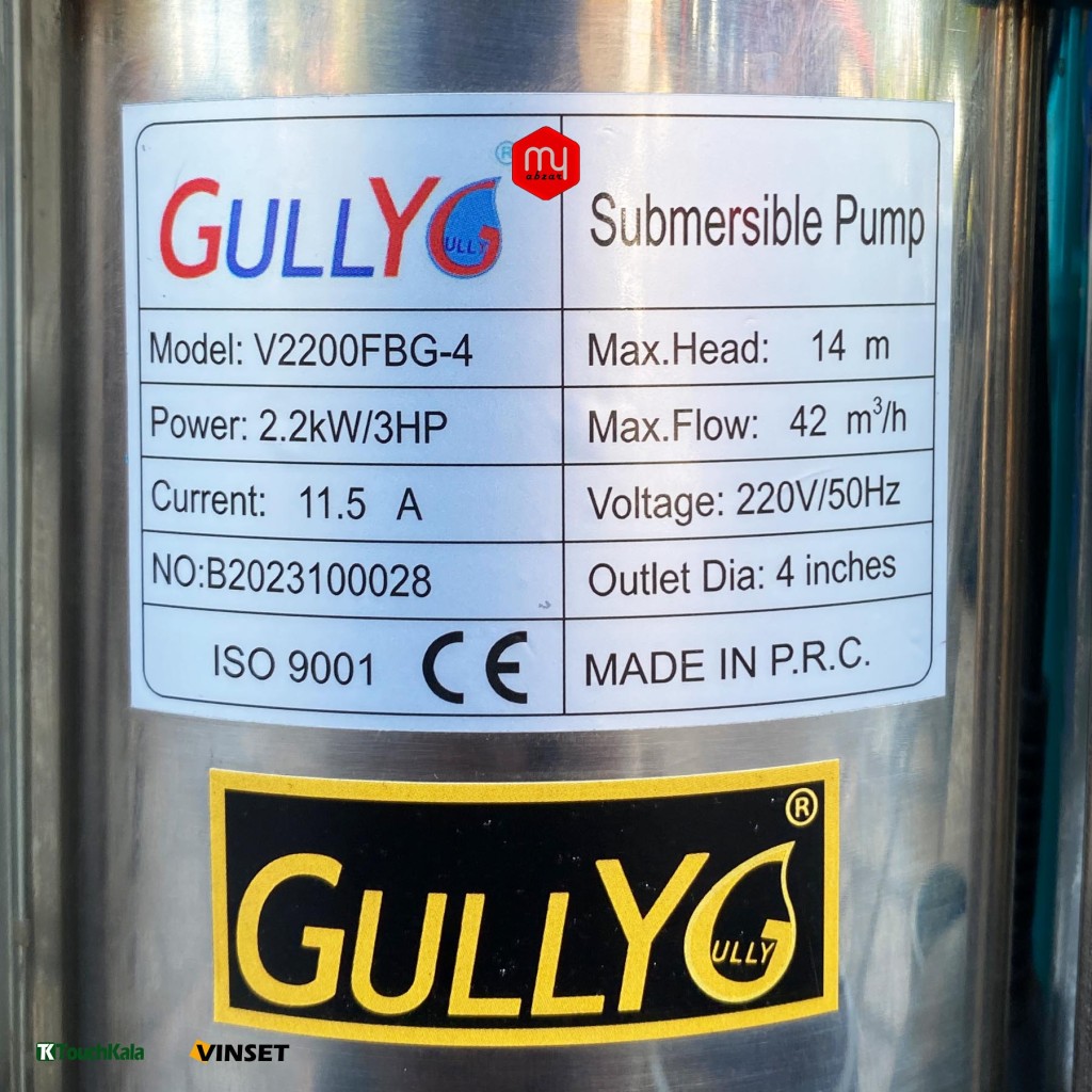 پمپ لجن کش 14 متری 4 اینچ گالی مدل V2200FBG 4 مناسب چاه های متراژ 5 الی 12 متر میباشد.لجن کش GULLY-گالی با بدنه چدن-استیل و پروانه از جنس چدن و قدرت موتور 3 اسب توانایی خروج اب تا 700 لیتر در دقیقه را دارد.ساخت چین.