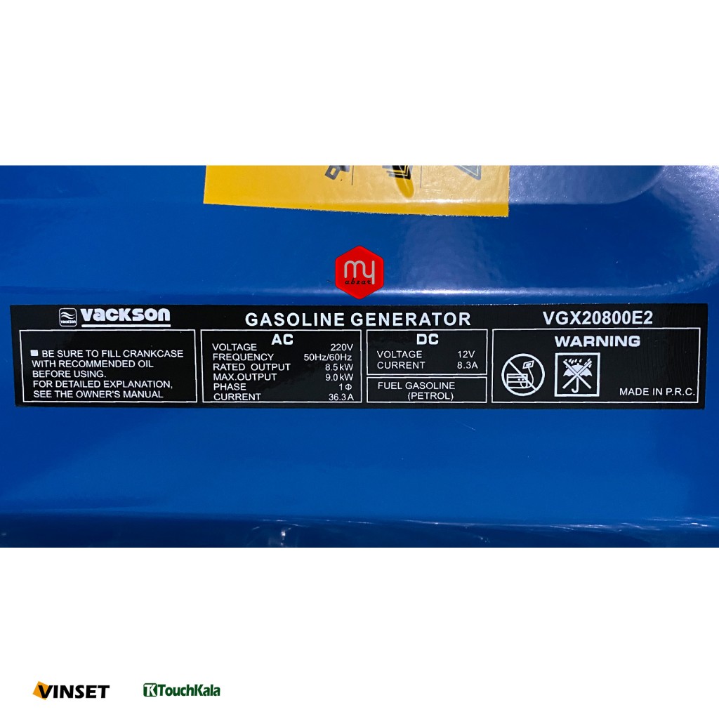 مشخصات فنی موتور برق بنزینی واکسون 9 کیلووات مدل VACKSON VGX20800E2