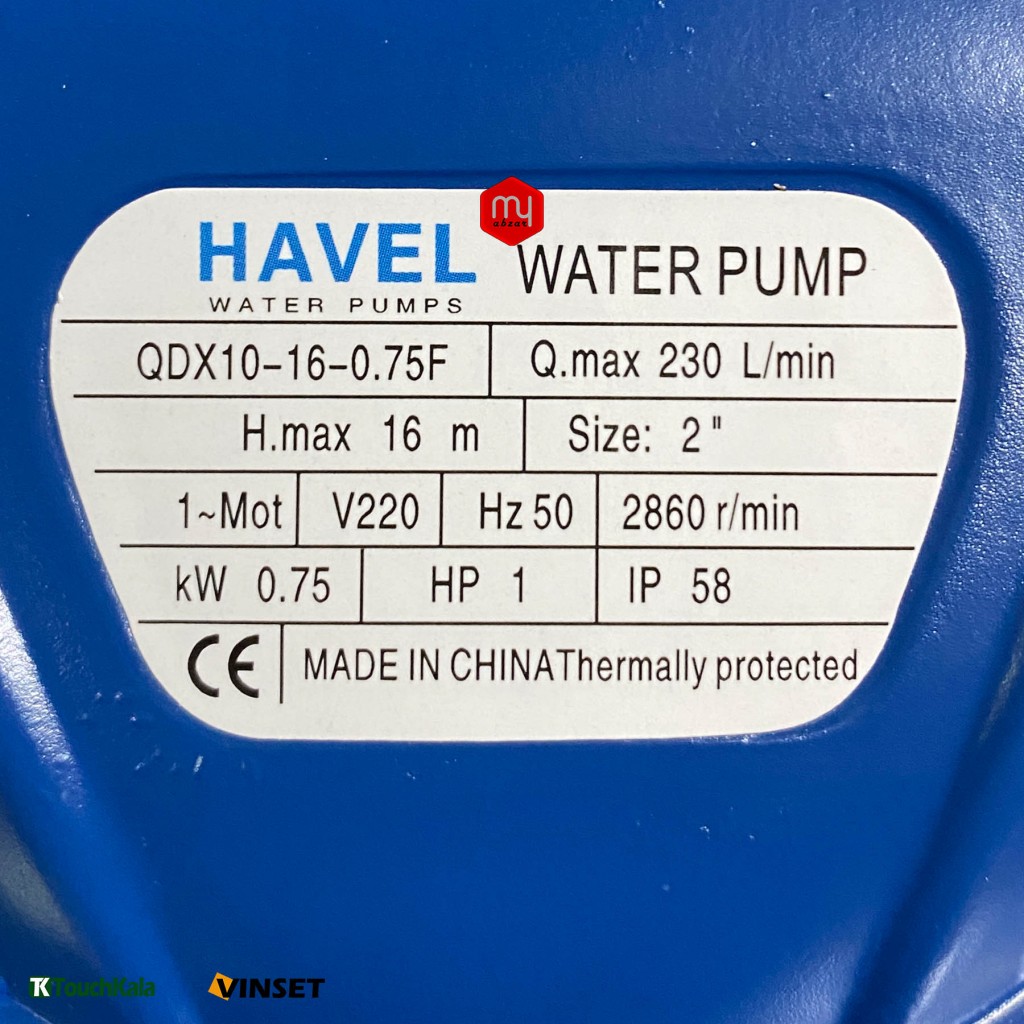 کفکش هاول 16 متری مدل HAVEL QDX10-16-0.75F مناسب چاه های اب صاف و متراژ 2 الی 12 متر میباشد.