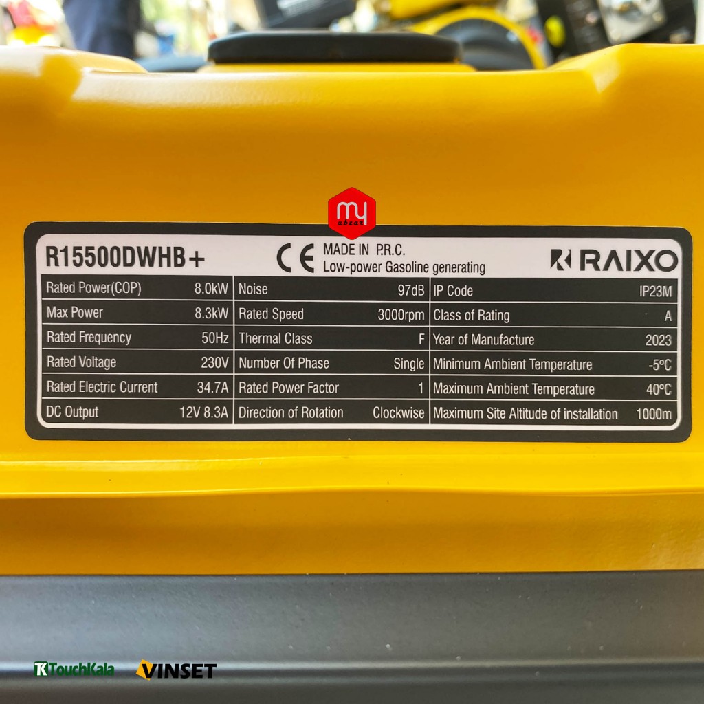 موتور برق رایکسو 8300 وات مدل +raixo R15500DWHB , از نوع موتور هواخنک, چهازمانه و تکفاز میباشد. نوع سوخت قابل استفاده بنزین است. فرکانس 50 هرتز است. دارای موتور قدرتمند به توان 17 اسب است که در حالت اوج به خروجی برق 8300 وات میرسد.