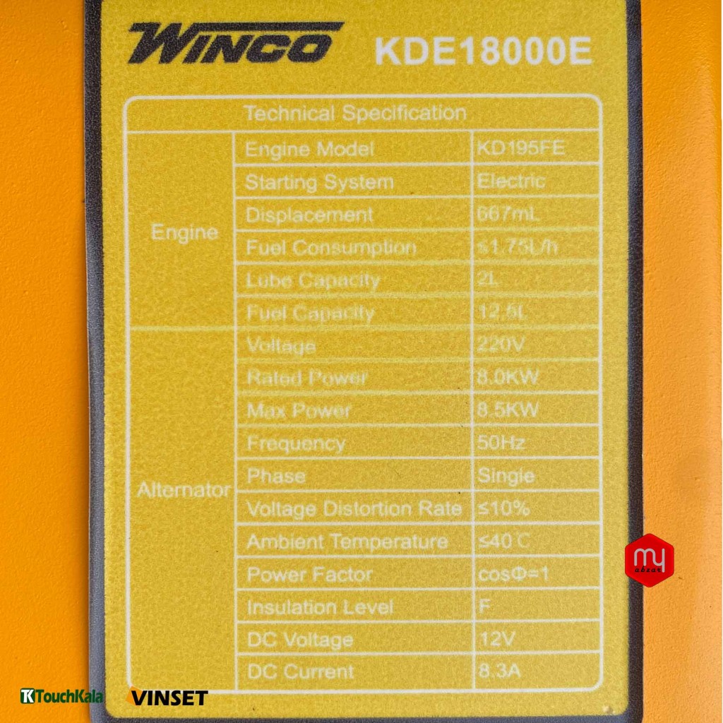 مشخصات فنی موتوربرق 8.5 کیلووات وینکو مدل WINCO KDE18000E: