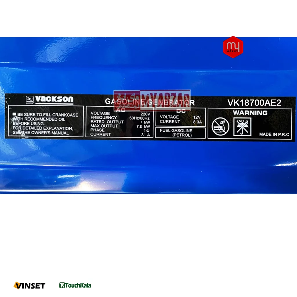 برند و مدل | موتور برق بنزینی واکسون 7.5 کیلووات مدل VK18700AE2 |