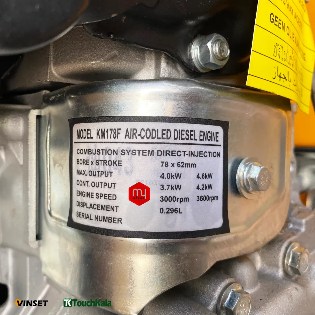مشخصات کلی موتور تک گازوئیلی واکسون مدل KM 178F: