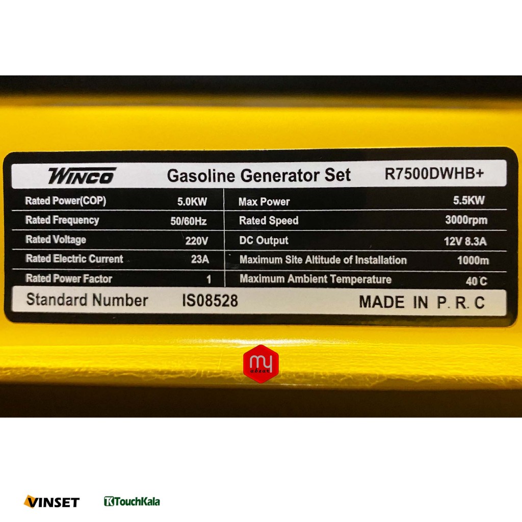 برند و مدل | موتور برق بنزینی وینکو 5.5 کیلووات مدل +WINCO R7500DWHB |