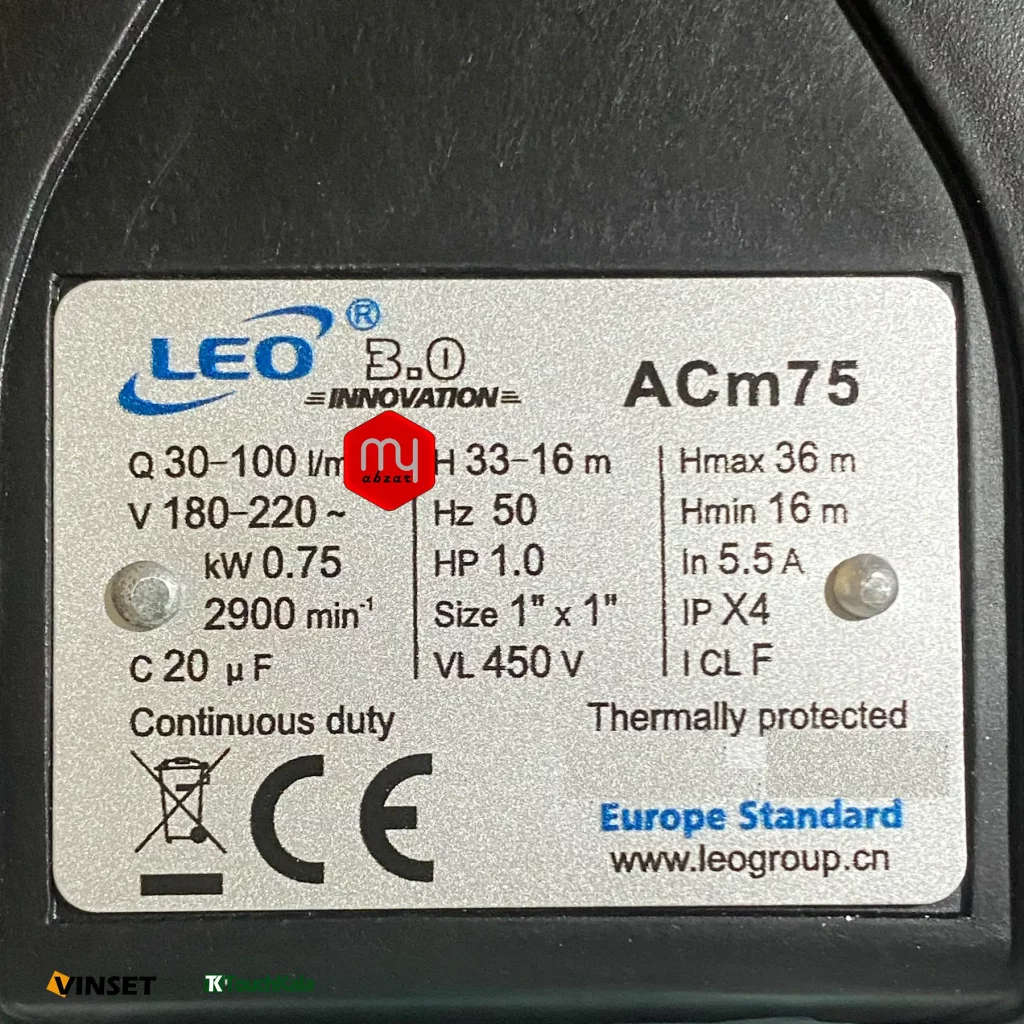 پمپ ACm 75 لئو به پمپ یک اسب لئو شهرت دارد البته یک اسب بخار معادل برابر با 746 وات است. اگرچه وات و کیلووات را همه به عنوان واحد اندازهگیری میشناسیم، ولی همچنان در ایالات متحد برای اندازهگیری دستگاه الکتریکی باقدرت بالا، از واحد اندازهگیری اسب بخار استفاده میشود. پمپ ACm 75 لئو دارای ماکزیمم هد 36 متر در دبی صفر است، توانایی شارش جریان سیال تا دبی 100 لیتر بر دقیقه تا ارتفاع 16 متری را دارد، در واقع میتواند فشار آب یک ساختمان تا 5 طبقه را تامین کند و برای ارتفاعات بالاتر از 36 متر مناسب نیست.