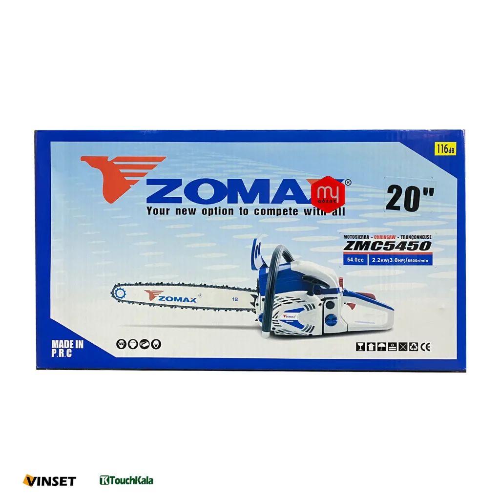 اره موتوری زوماکس مدل ZMC5450 ساخت کشور چین است. این اره دارای موتور 3 اسب بخار میباشد. تیفه اره زوماکس 56 سانتی متر است که مناسب برش درختان با قطر 50 سانت است. اره zomax دارای سیستم ضدلرزش ، سیستم ترمز زنجیر و تنظیم آسانِ زنجیر است . تنظیمِ آسان راحتی کاربران را هنگام استفاده تضمین کرده است.