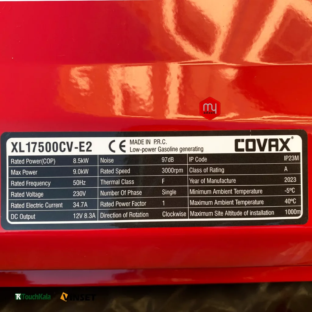 مشخصات فنی موتور برق بنزینی کوواکس 9 کیلووات مدل XL17500CV-E2: