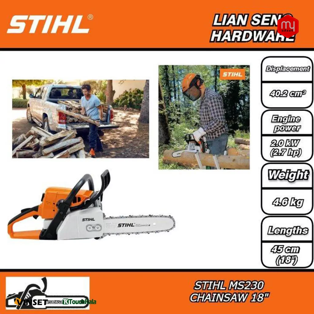 شرکت اشتیل آلمان از برترین و محبوب ترین برندهای دنیا در زمینه ابزار آلات باغبانی است . یکی از محصولات پر فروش این کمپانی اره موتوری مدل MS230 است که از موتور قدرتمند 2.7 اسب بخار و حجم موتور 45.3 سانتی متر مکعب جهت برش و هرس انواع چوب بهره می برد . از ویژگی های این اره می توان به حجم کوچک دستگاه و وزن سبک آن اشاره کرد .