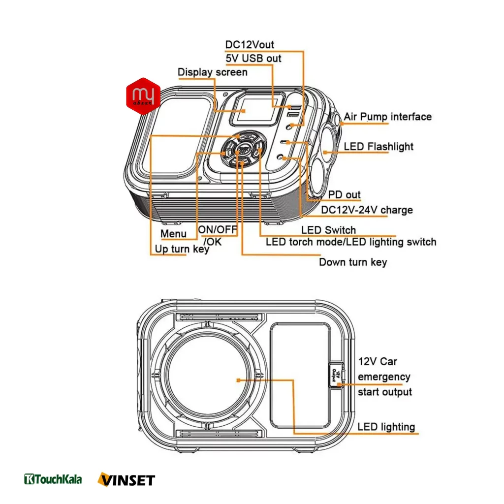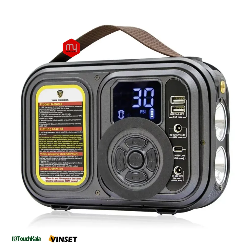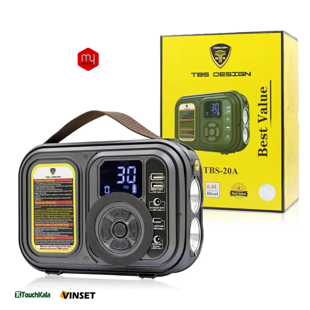ویژگیهای پاور بانک و کمپرسور باد و جامپ استارتر خودرو تی بی اس(توبیز) مدل TBS 20A