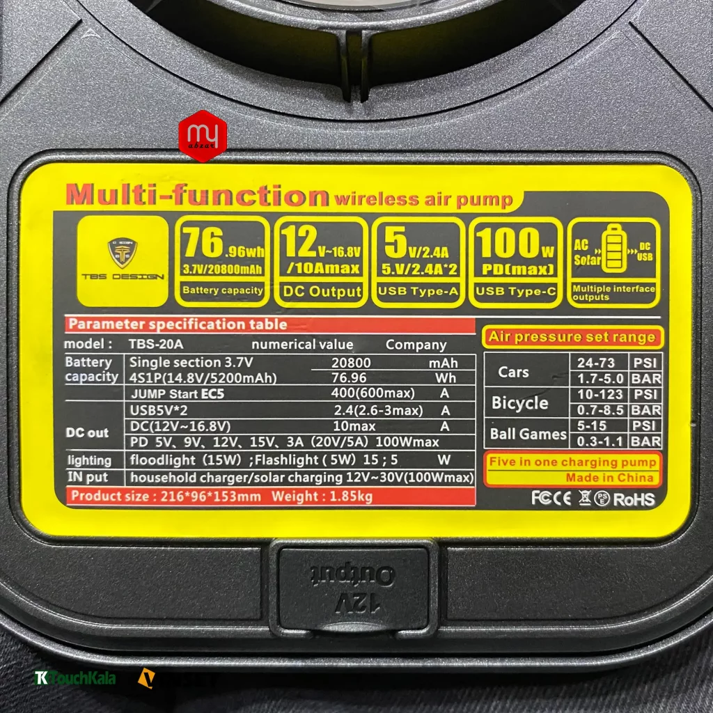 پاور بانک و کمپرسور باد و جامپ استارتر خودرو توبیز مدل TbS-20A