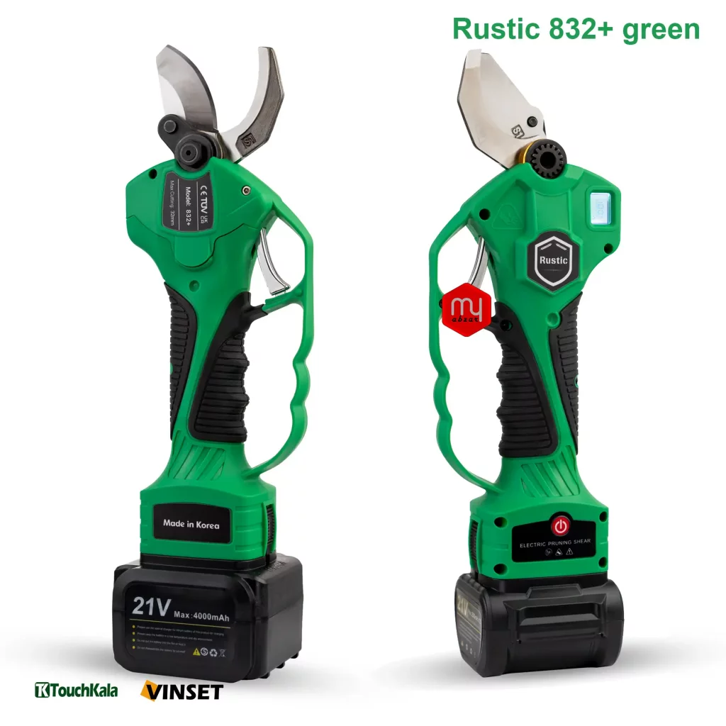 قیچی شارژی روستیک مدل 832 پلاس با باطری لیتیوم 21 ولت 2 عدد ( یک عدد 2000 میلی آمپر بعلاوه یک عدد سوپر پر ظرفیت 4000 میلی آمپر) و قطر برش 32 میلیمتر، مناسب برای برش و هرس شاخه ها میباشد.