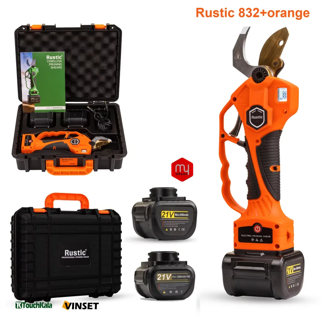 مشخصات فنی قیچی شارژی روستیک مدل 832+ (پلاس) نارنجی با تیغه تیتانیوم :