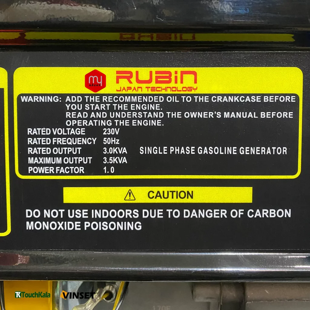 موتور برق روبین ساخت چین تحت لیسانس ژاپن از نوع موتور هواخنک,بنزینی, 3500وات, چهازمانه و تکفاز میباشد.
