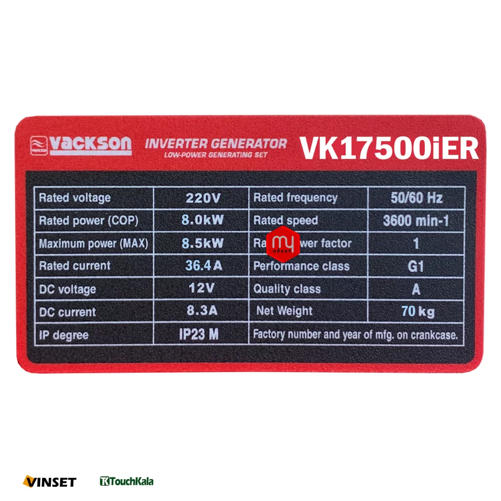 مشخصات فنی موتور برق بنزینی واکسون مدل VACKSON VK 17500 iER