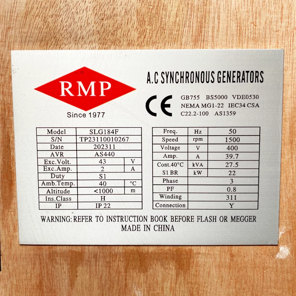 ژنراتور 22 کیلووات RMP از بهترین برند تولید کننده ژنراتور طرح استمفرد موجود در بازار با سیم پیچی تمام مس که توانای تولید 27.5 کاوا را دارد