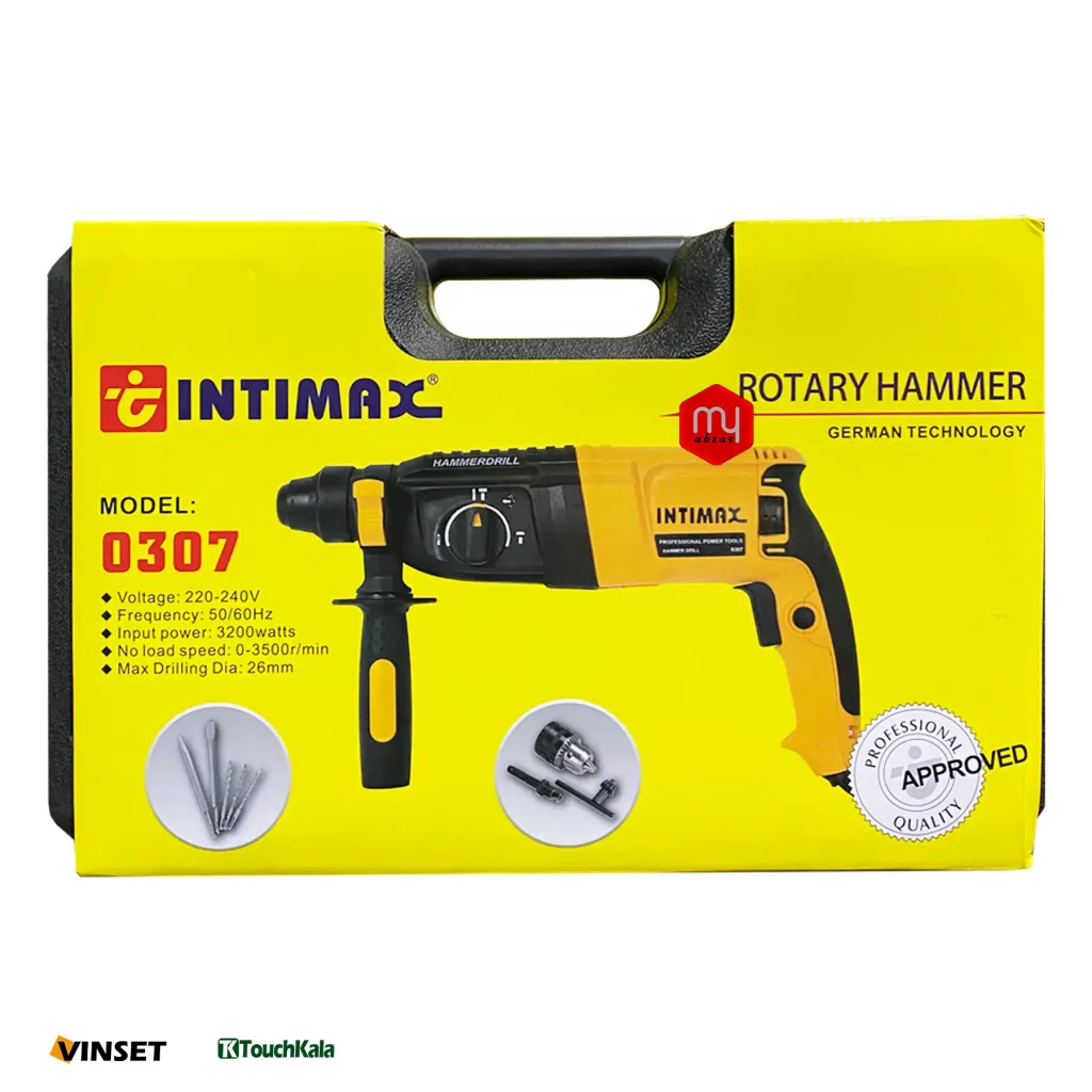 محصول فوق یکی از تولیدات شرکت INTIMAX بوده و برای افرادی که میخواهند یک دریل بتن کن سبک داشته باشند مناسب است. این دستگاه در مقایسه با بسیاری از دریلهای چکشی از قدرت تخریب و سوراخکاری بیشتری روی سطوح سیمانی و گچی برخوردار است. توان مصرفی این محصول 3200 وات است.
