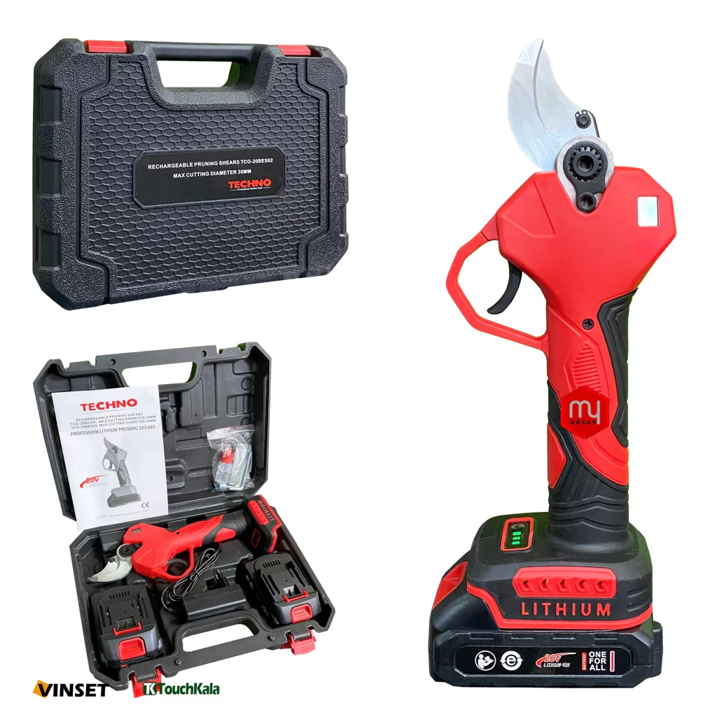 قیچی هرس شارژی تکنو مدل TCO-20BES02 با قطر برش 30 میل ، صفحه نمایشگر شارژ باتری ، وزن سبک ، طراحی ارگونومیک ، تیغه های کربن ، قابلیت اتصال دسته تلسکوپی ، دوام فنی منحصر بفرد و باتریهایی که یک روز کامل شارژ دهی دارند