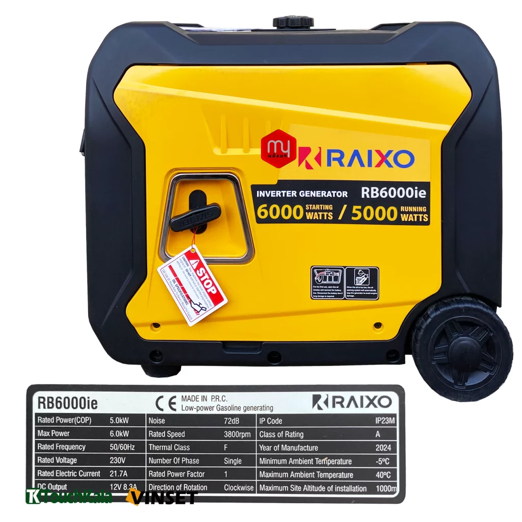 موتور برق راکسیو مدل RB 6000 ie ریموت استارت , از نوع موتور هواخنک, چهازمانه و تکفاز اینورتر میباشد. نوع سوخت قابل استفاده بنزین است. فرکانس 50 هرتز است. دارای موتور قدرتمند به توان 8 اسب است که در حالت اوج به خروجی برق 6000 وات میرسد.