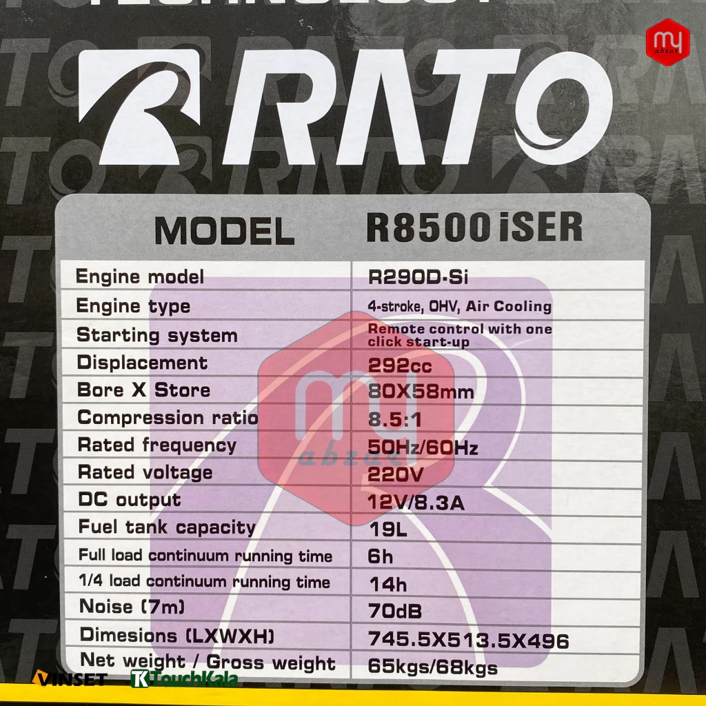 مشخصات فنی موتور برق راتو مدل R8500iSER اینورتری