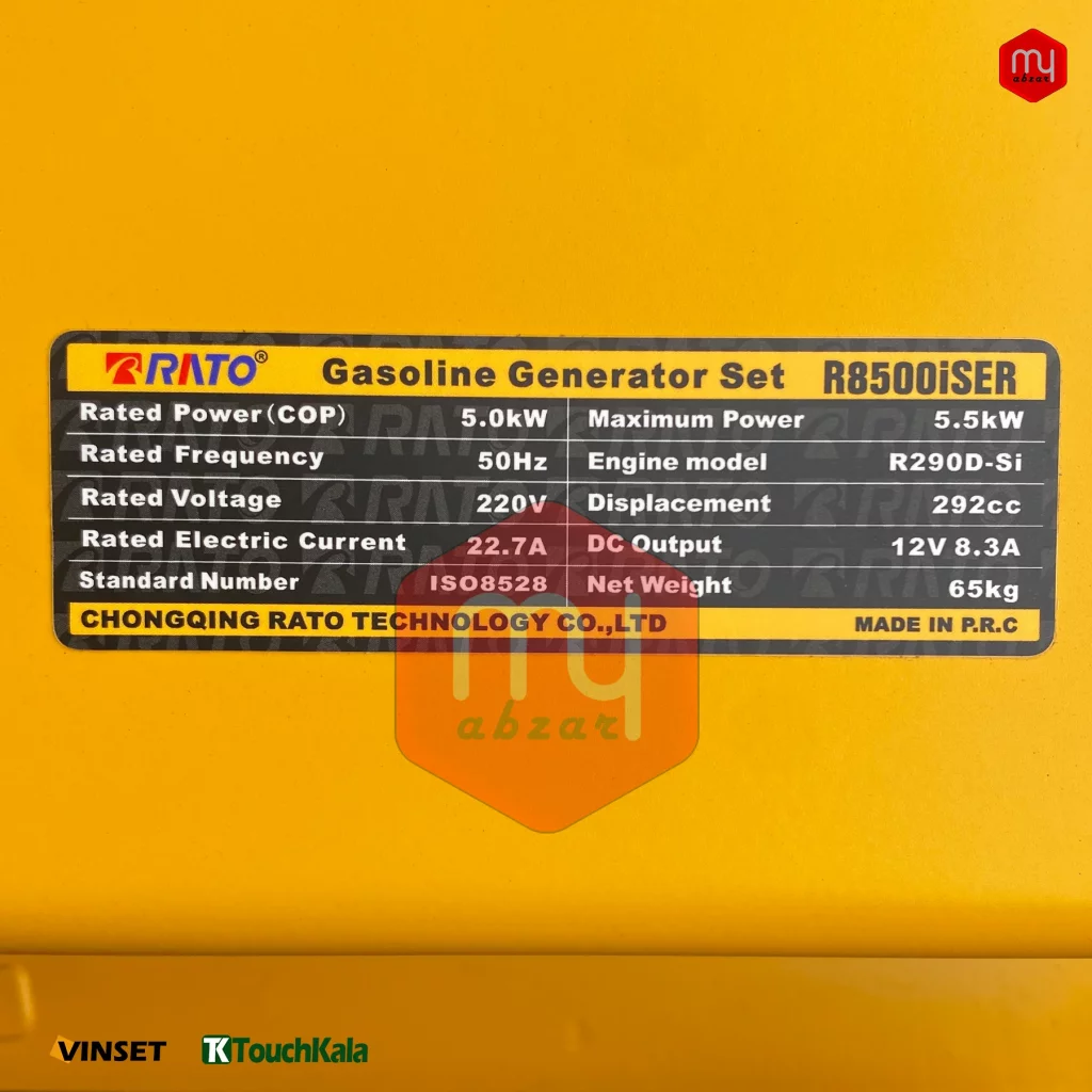 برند و مدل | موتور برق اینورتری راتو 5.5 کیلووات مدل R8500iSER ریموت استارت |
