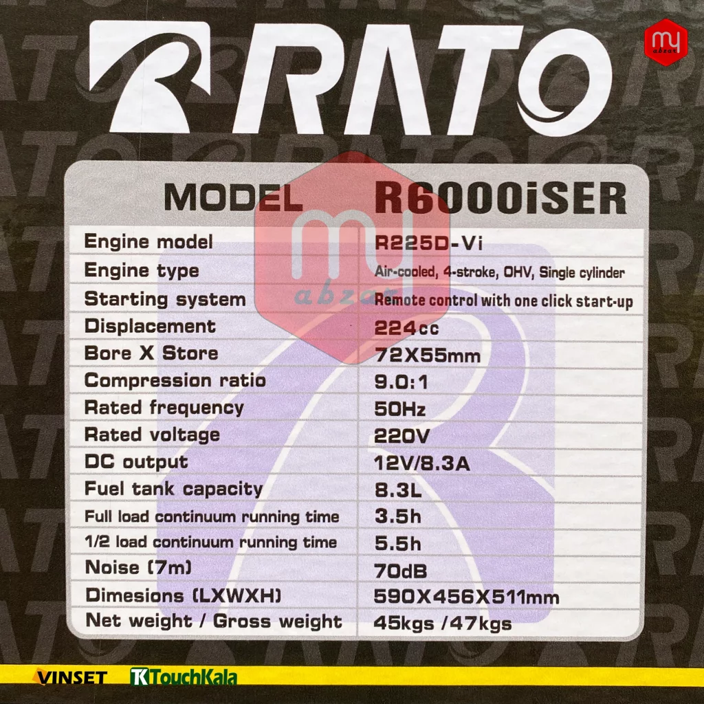 برند و مدل | موتور برق راتو 4 کیلووات سایلنت مدل R6000iSER ریموت استارت |