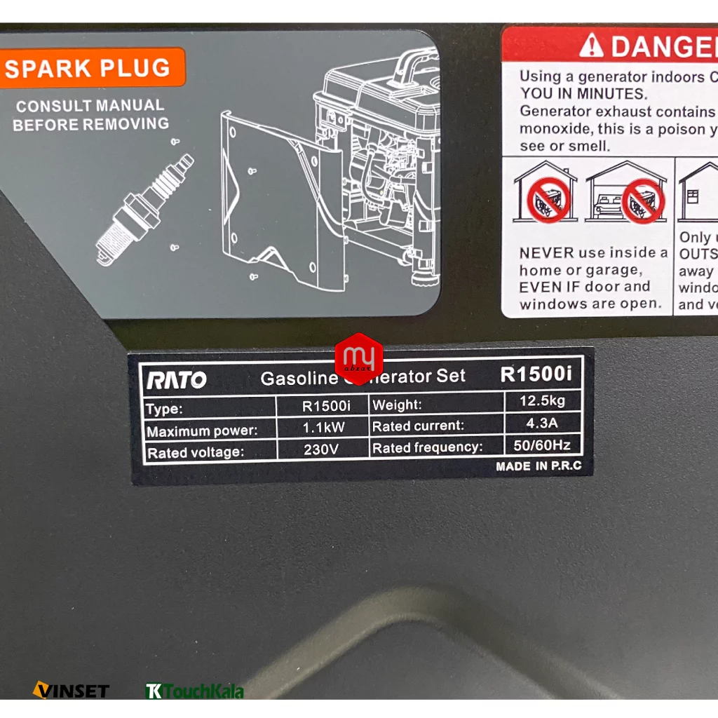 موتور برق خانگی راتو 1500، دارای سنسور سطح روغن، تنظیم کننده دور موتور، ژنراتور اینورتر میباشد.