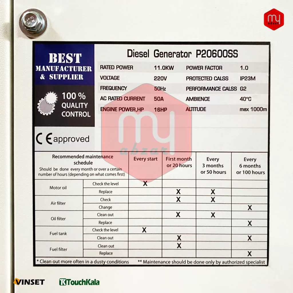 مشخصات فنی موتور برق گازوئیلی فیروچی 11 کیلووات سایلنت مدل P20600SS: