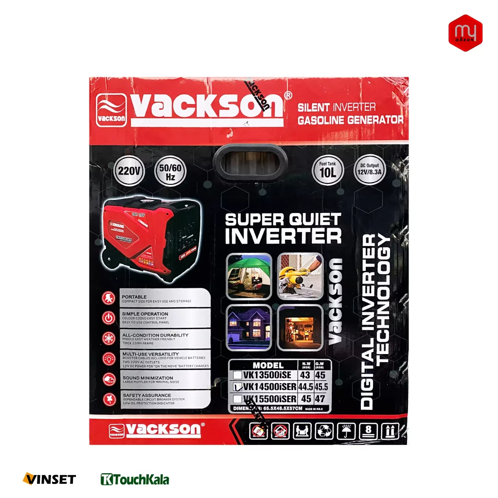موتور برق استارتی واکسون مدل VK 14500 iSER, از نوع موتور هواخنک, چهازمانه و تکفاز میباشد. نوع سوخت قابل استفاده بنزین است. فرکانس 50 هرتز است. دارای موتور قدرتمند به توان 9 اسب است که در حالت اوج به خروجی برق 4500 وات میرسد.