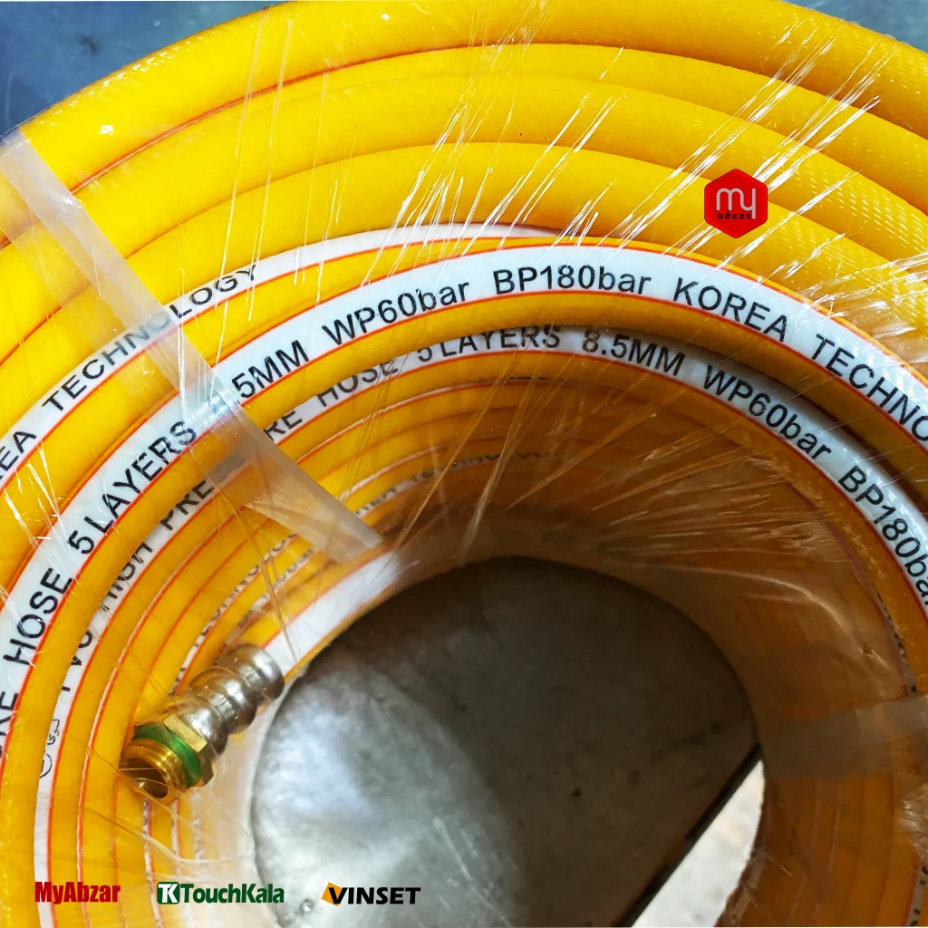 شیلنگ سمپاش 5 لایه لوکا 50 یاردی سایز 8.5 و ضخامت 5 لایه با تحمل فشار 180 بار ساخت چین با تکنولوژی کره کیفیت بسیار بالای دارد