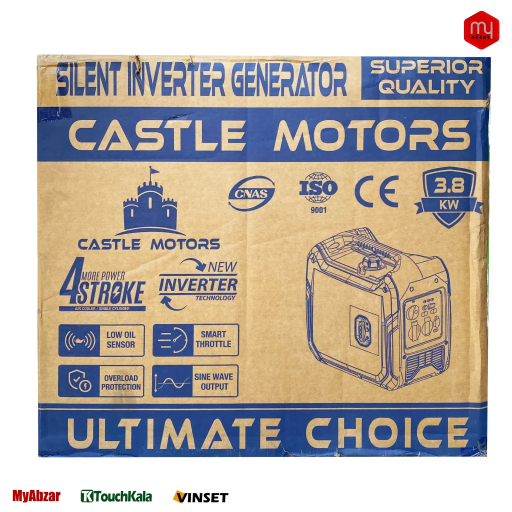 موتور برق خانگی کستل موتور 3800 وات، دارای سنسور سطح روغن، تنظیم کننده دور موتور، برد اینورتر میباشد.