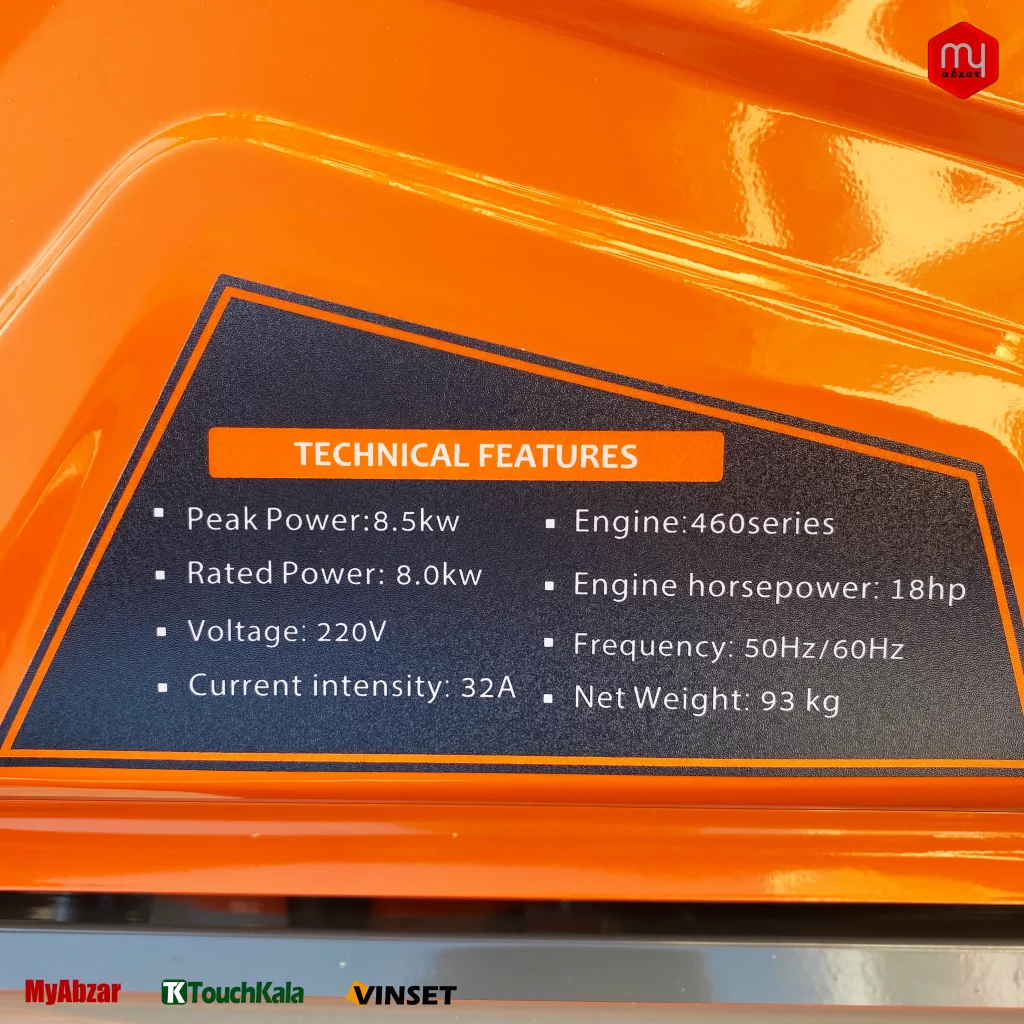 مشخصات فنی موتور برق ایزی پاور 8.5 کیلووات مدل GT18500E