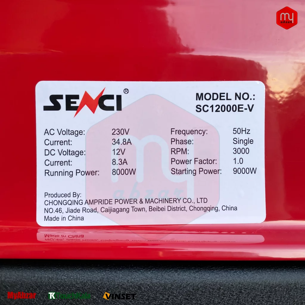 موتور برق سنسی 9000 وات، دارای سنسور سطح روغن، تنظیم کننده دور موتورمیباشد.