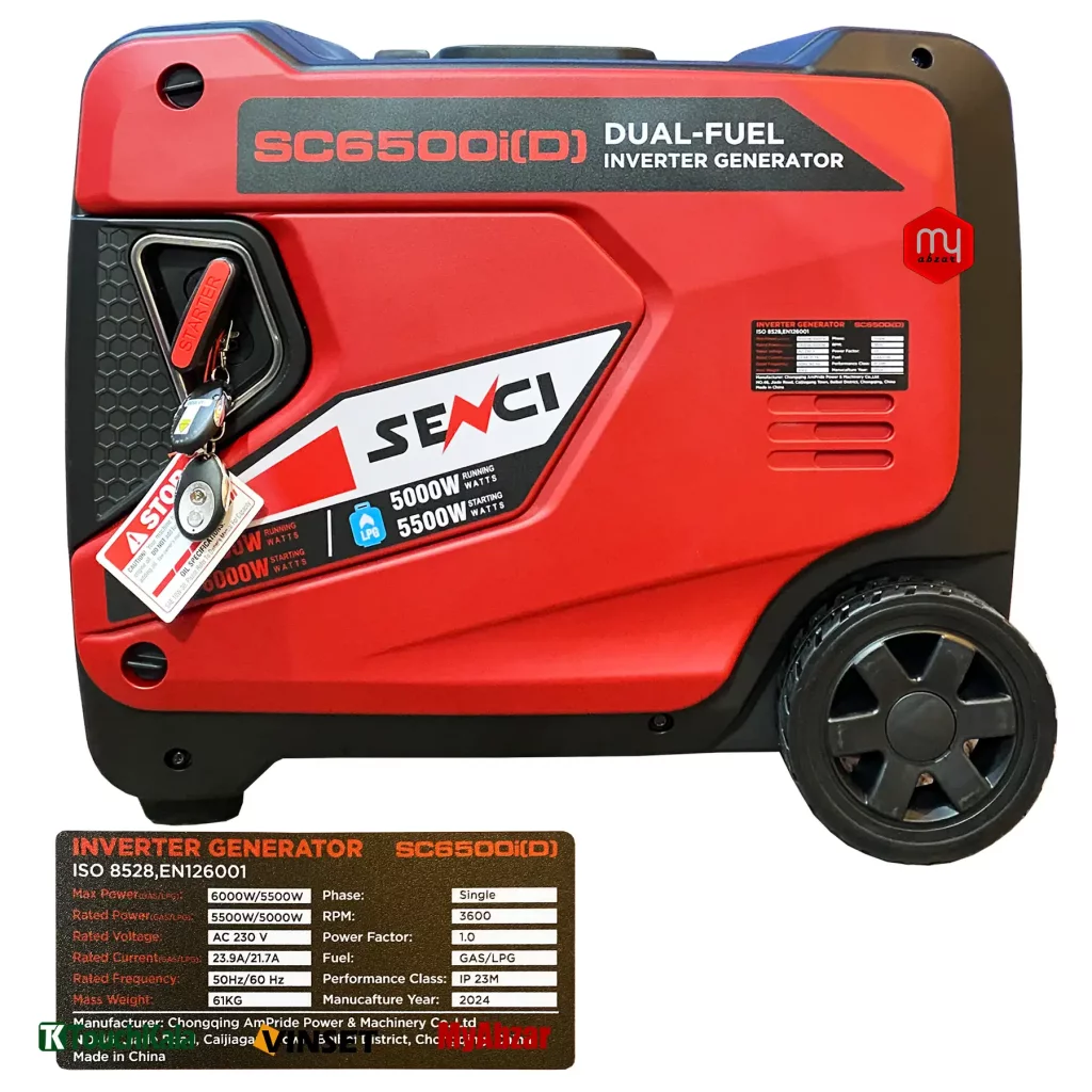 ویژگی های برتر موتور برق سنسی 6000 وات مدل SC6500iD+LPG سایلنت :