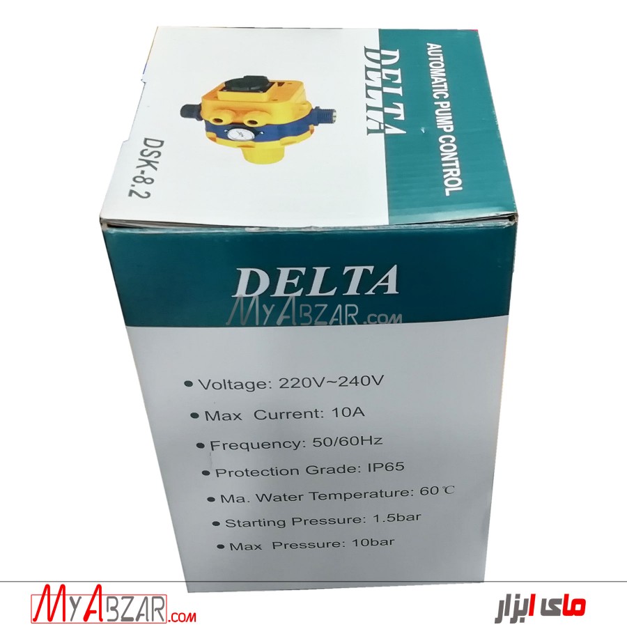 کلید اتوماتیک دیجیتال پمپ آب دلتا با فشار کاری 1 تا 10 بار است. این کلید بدون نیاز به منبع دیافراگمی و قابل استفاده با پمپ های 0.5 تا 1.5 اسب بخار میباشد و قابلیت خاموش کردن خودکار پمپ در هنگام قطعی آب را دارد، همچنین دارای شیر یک طرفه می باشد که مانع برگشت آب پر فشار به مخزن ذخیره یا لوله ورودی آب شهری میباشد.همچنین گیج نمایش دهنده فشار آب بصورت استاندارد بر روی این کلید نصب گردیده است. با استفاده از این محصول، پنج راهی برنجی - اتوماتیک دستی - گیج فشار و منبع دیافراگمی از سیستم پمپ شما حذف گردیده و از ایجاد هزینه های اضافه جلوگیری میگردد. این کلید اتوماتیک نیازی به سرویس و تنظیمات دوره ای نخواهد داشت.