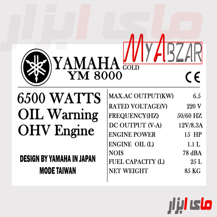 مشخصات موتور برق یاماها 6.5 کیلووات مدل YAMAHA YM-8000