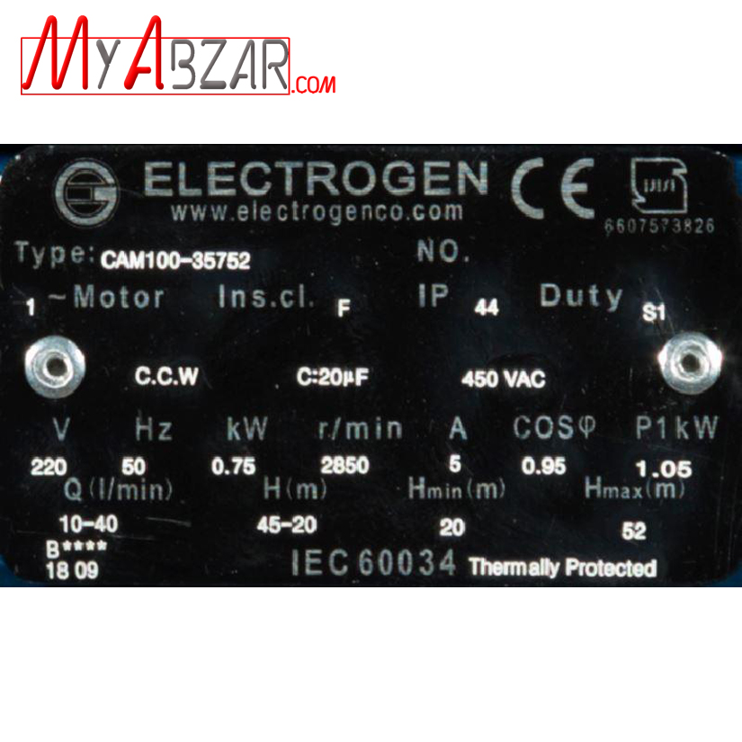 پمپ آب خودمکش الکتروژن سری CAM100 علاوه بر عملکرد هیدرولیکی بالایی که دارد، توانایی تامین فشار بالایی نیز دارد. به همین دلیل این پمپ سانتیرفیوژ قدرت مکش فوق العاده ای حتی در شرایطی که آب با هوا همراه است نیز دارد.