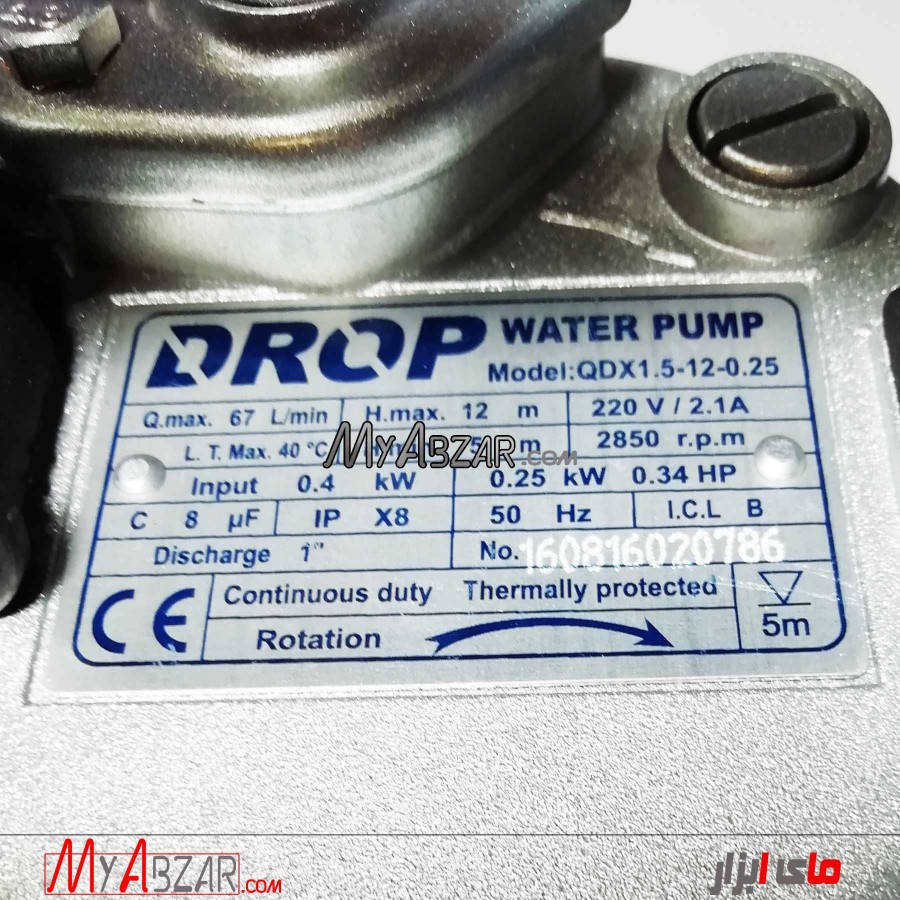 کفکش 12 متری 1 اینچ مدل QDX1.5-12-0.25 مناسب چاه های اب صاف و متراژ 1 الی 10 متر میباشد.
