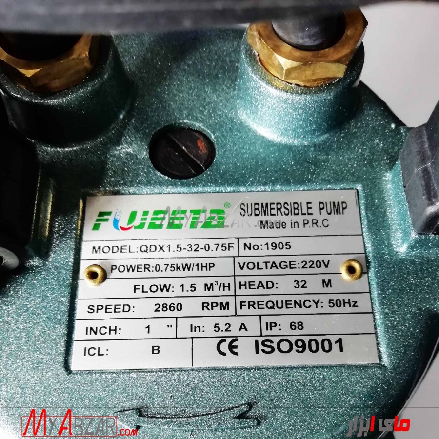 کفکش 32 متری 1 اینچ مدل QDX1.5-32-0.75 مناسب چاه های اب صاف و متراژ 5 الی 28 متر میباشد.